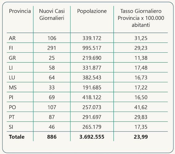 Questa l’incidenza nei nuovi positivi nelle singole province