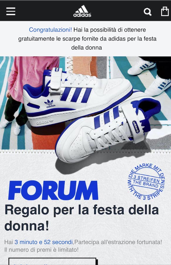 Cliccando sul link che rimanderebbe al concorso, si arriva in realtà a un questionario in seguito al quale, per ottenere l’omaggio, viene richiesta una cifra minima per la spedizione e la condivisione con almeno 20 contatti.”