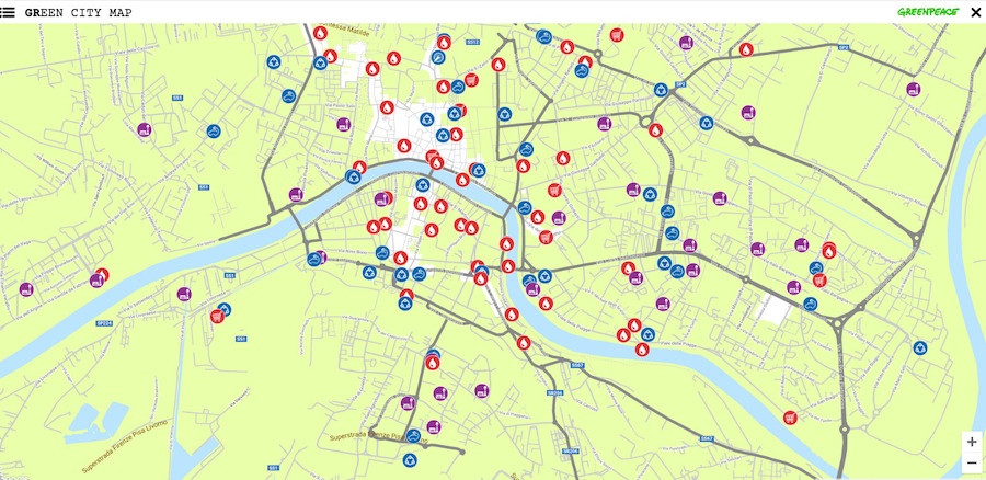 Nella giornata mondiale dell’ambiente, Greenpeace lancia una mappa digitale per ripensare il modo in cui viviamo le nostre città e scoprire il loro lato più green. Nata proprio dall’esperienza dell’ecoguida di Pisa, realizzata dalle volontarie e dai volontari di Greenpeace nell’ottobre 2019, l’ecomappa include Pisa tra le prime nove città italiane censite: offre una guida navigabile da computer e smartphone per trovare le aree verdi e i servizi di bike sharing più vicini, i punti vendita di prodotti sfusi o usati, i mercati contadini e gli orti urbani. Ma anche per scoprire quali aree della città sono collegate da piste ciclabili, se ci sono ciclofficine nel proprio quartiere, dove si trovano fontanelle ed erogatori di acqua potabile e per orientarsi tra parchi, giardini e negozi di artigianato.