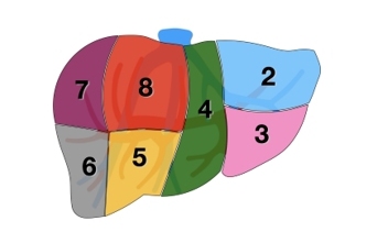 Il fegato è costituito da 8 segmenti come rappresentato nella figura 1 in basso.