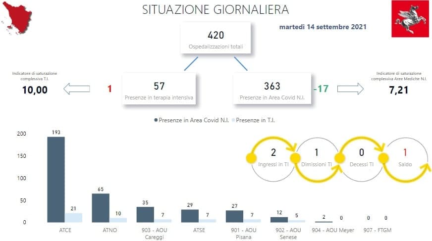 Questa la situazione ad oggi negli ospedali della Toscana: