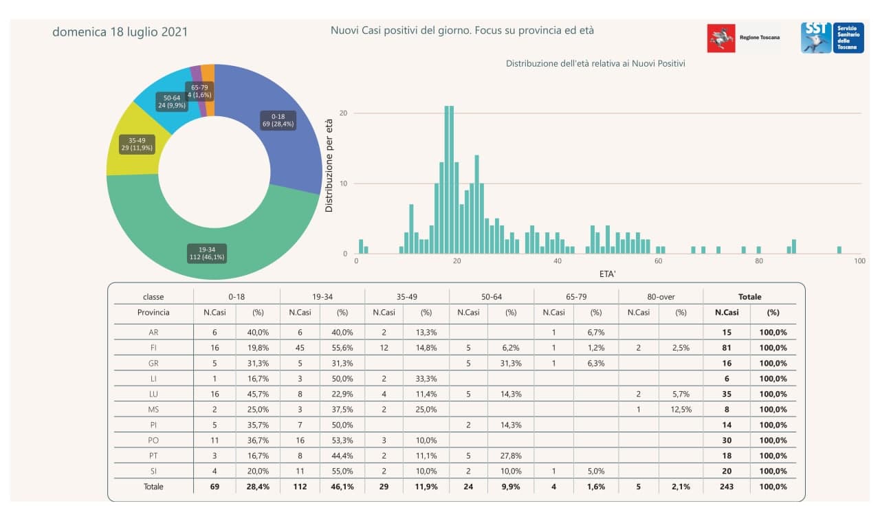 Il governatore Giani anticipa i primi dati di oggi 18 luglio. Sono 243 i nuovi casi positivi in Toscana nelle ultime 24 ore