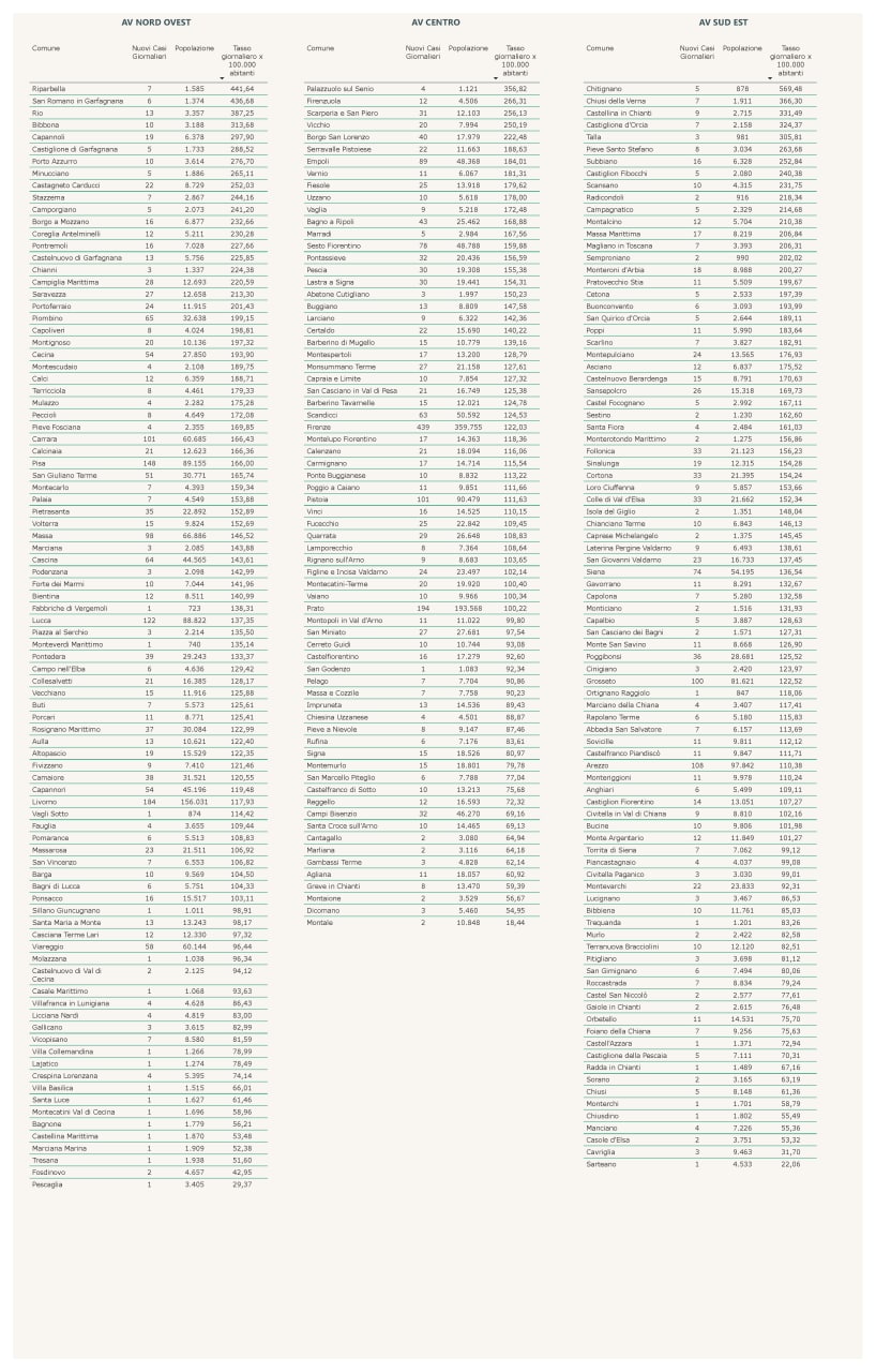 I dati suddivisi per comune: