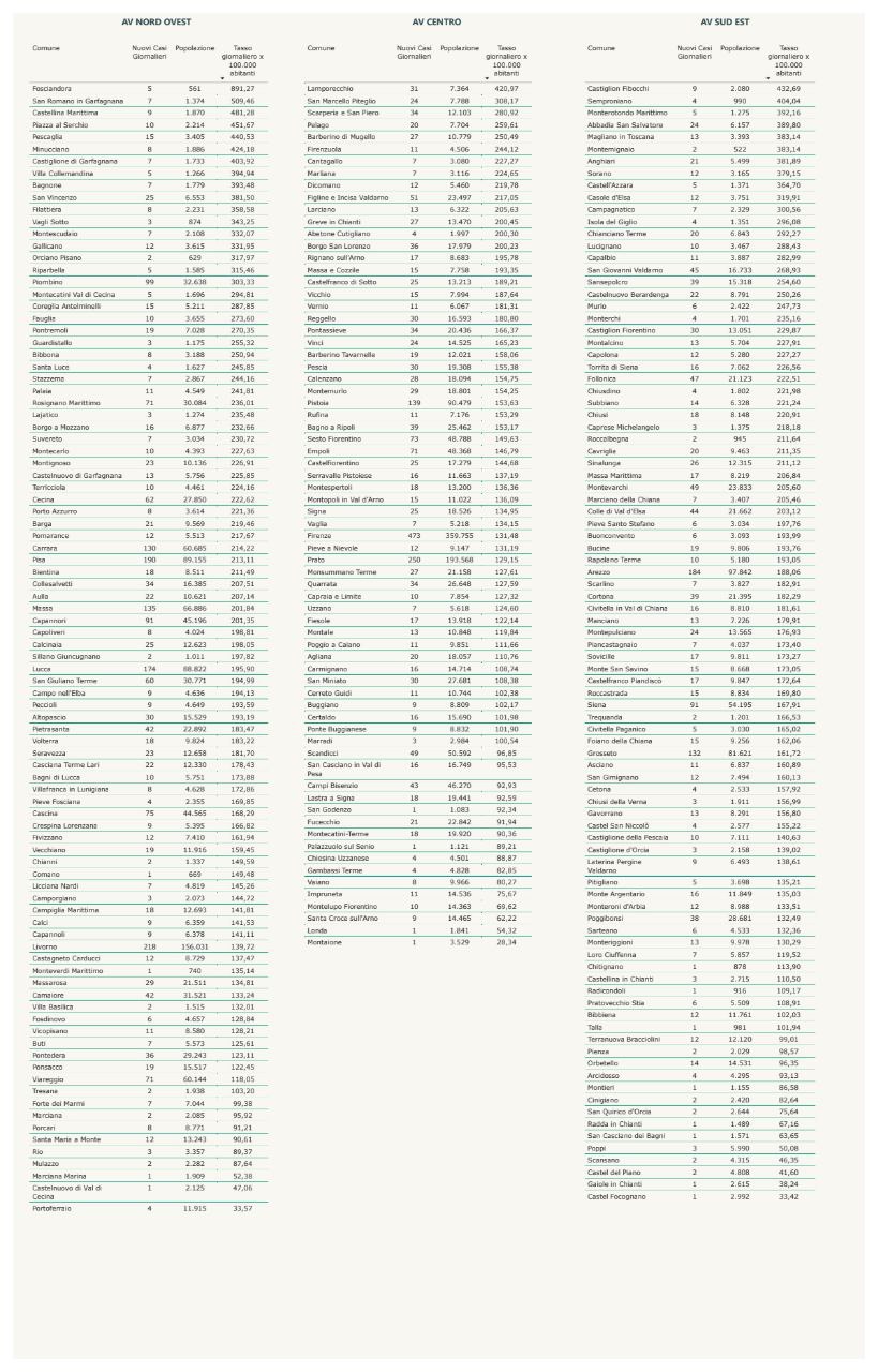 “I nuovi casi positivi sono 5.974 su 39.315 test di cui 7.090 tamponi molecolari e 32.225 test rapidi. Il tasso dei nuovi positivi è 15,20% (69,8% sulle prime diagnosi)