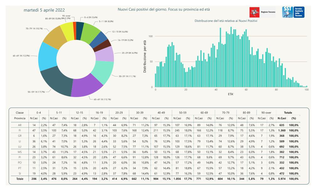 Pubblicati i dati di oggi dal Governatore. Giani. In Toscana sono 5.975 nuovi positivi al covid-19. Nel pisano sono 712 i nuovi casi