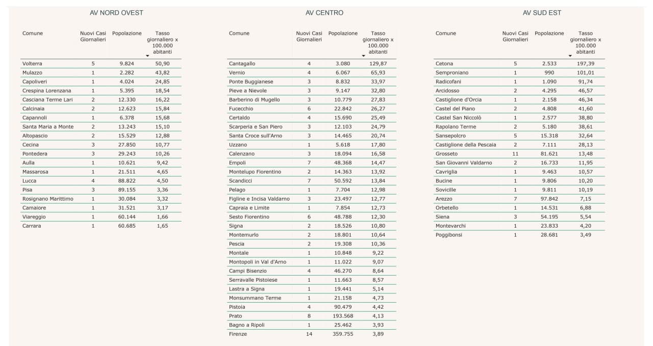 “I nuovi casi registrati in Toscana sono 193 su 14.814 test di cui 9.308 tamponi molecolari e 5.506 test rapidi. Il tasso dei nuovi positivi è 1,30% (3,3% sulle prime diagnosi).