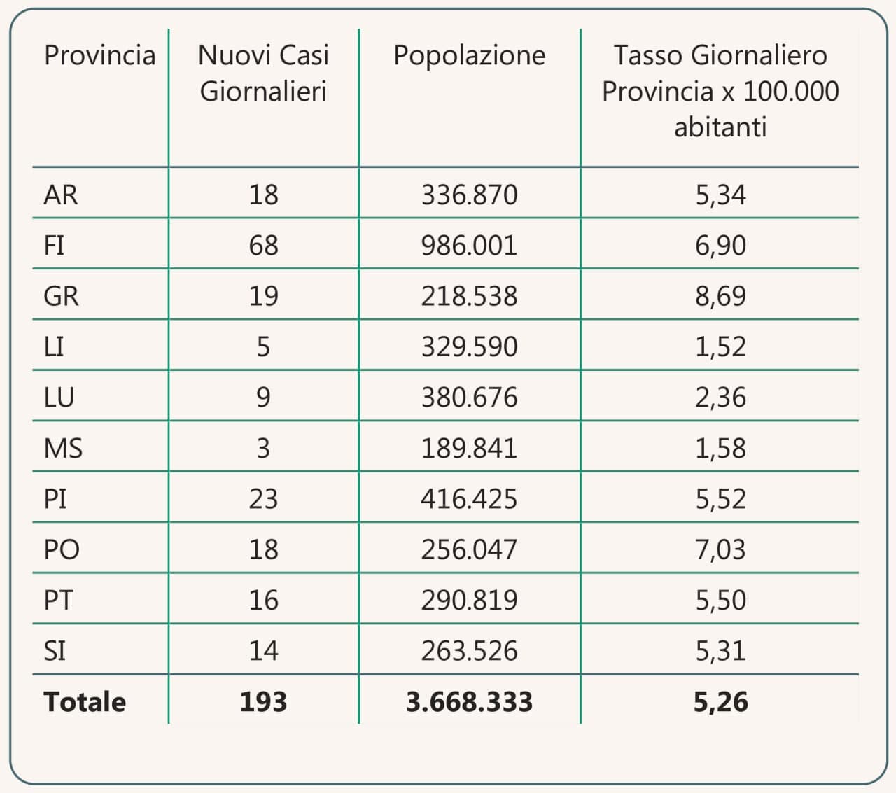Il governatore Giani ha anticipato i primi dati di oggi 6 giugno. Sono 193 i nuovi casi positivi in Toscana nelle ultime 24 ore