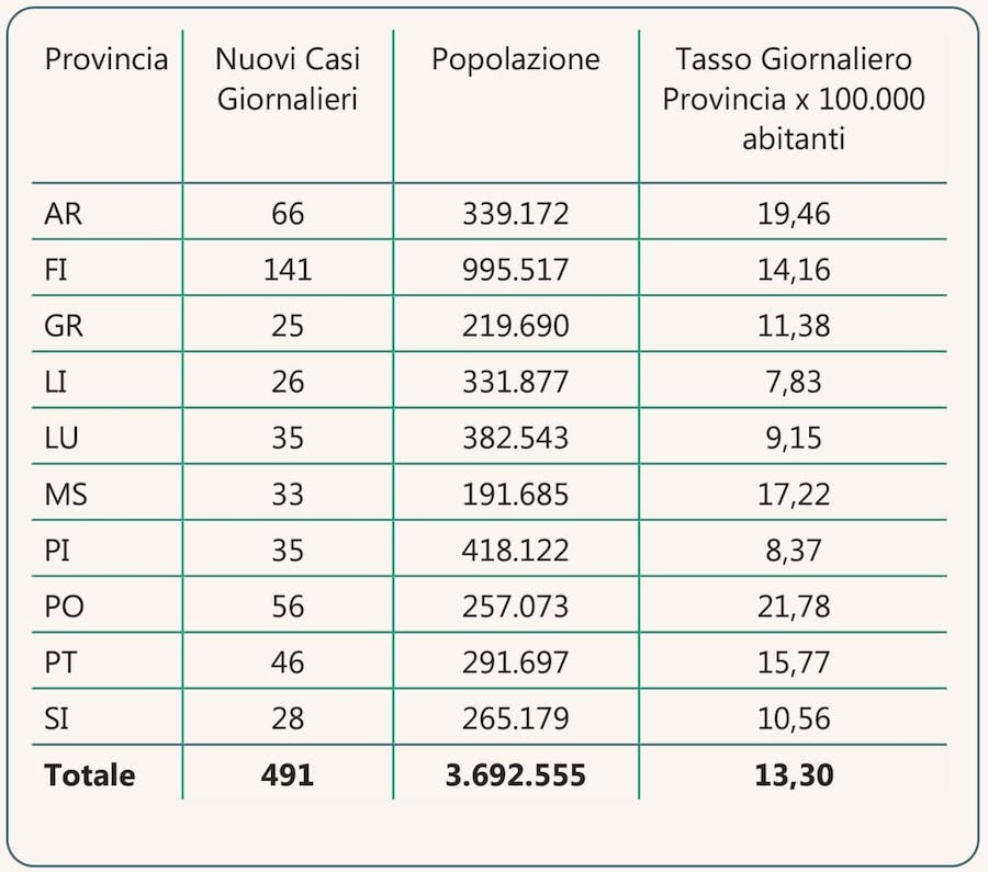 Covid: Anticipati i primi dati di oggi in Regione Toscana