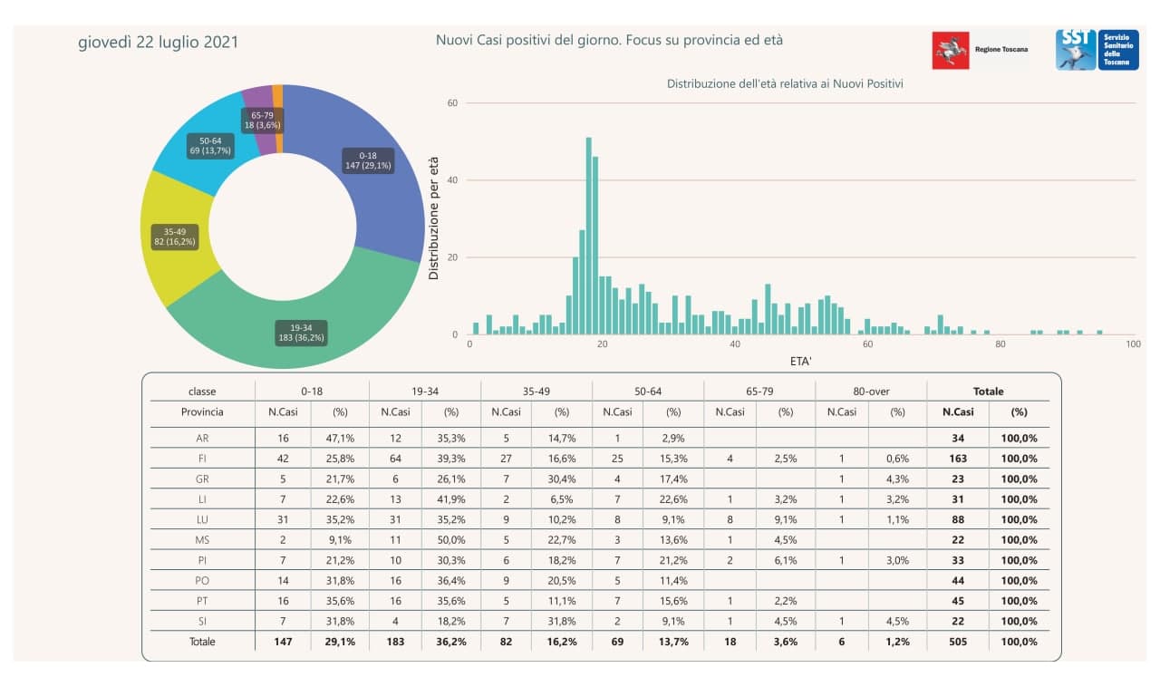Il governatore Giani anticipa i primi dati di oggi 22 luglio. Sono 505 i nuovi casi positivi in Toscana nelle ultime 24 ore