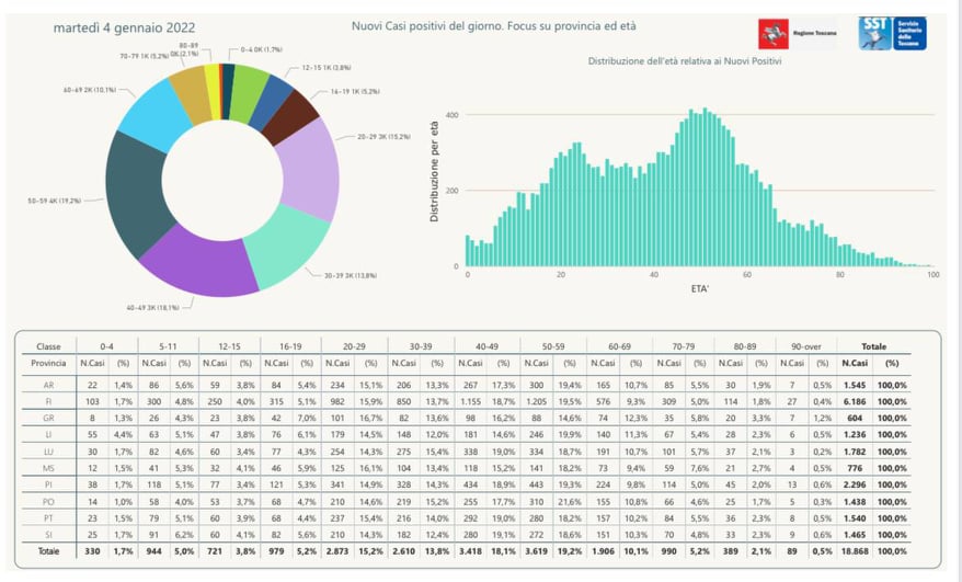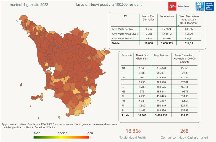 Covid – Dati 4 gennaio: Balzo dei nuovi contagi in Toscana. Nelle ultime 24 ore sono oltre 18mila