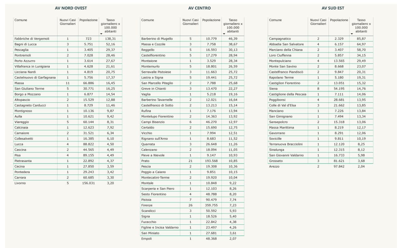 “I nuovi casi registrati in Toscana sono 248 su 18.342 test di cui 9.344 tamponi molecolari e 8.998 test rapidi. Il tasso dei nuovi positivi è 1,35% (3,6% sulle prime diagnosi).