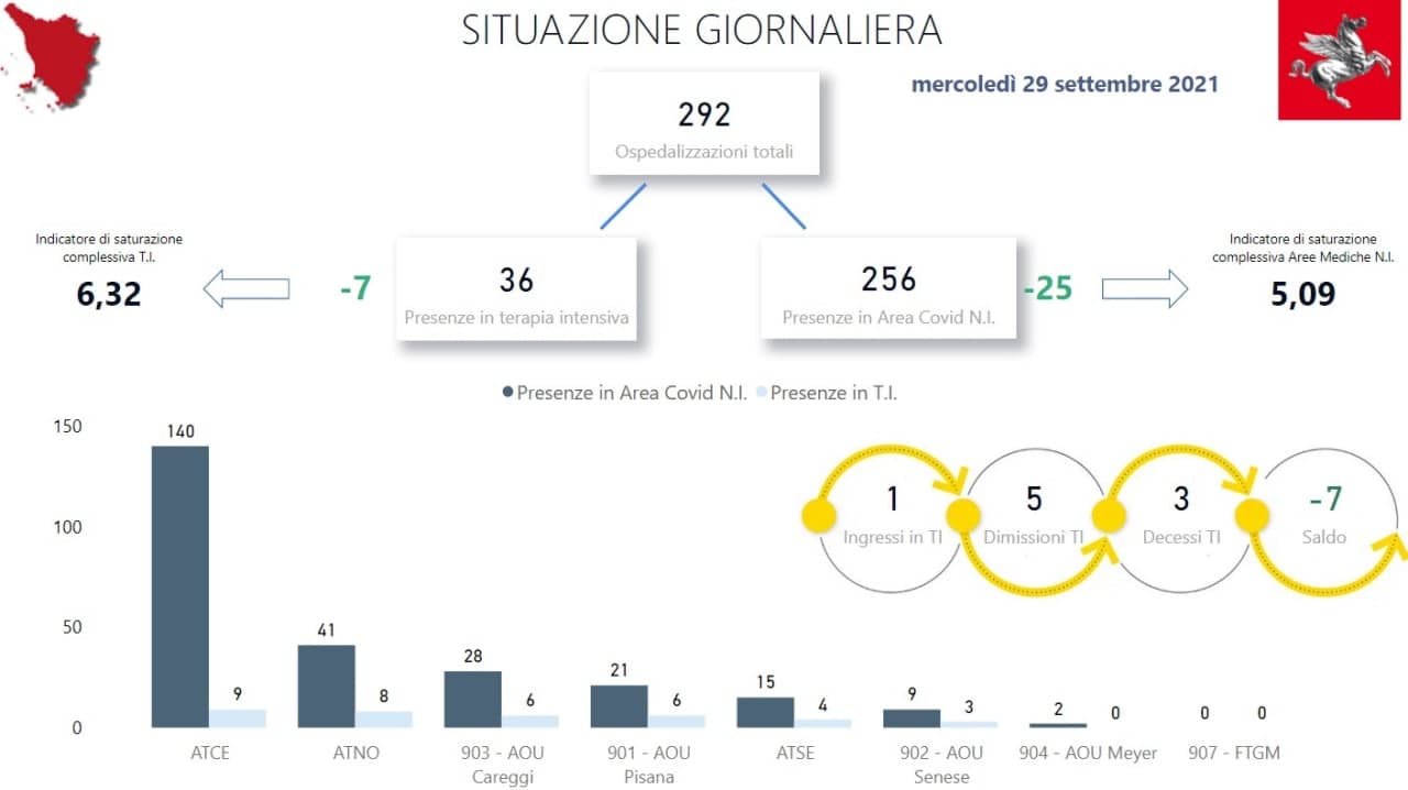 Questa la situazione ad oggi negli ospedali della Toscana: