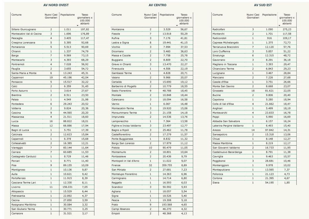 “I nuovi casi registrati in Toscana sono 418 su 26.625 test di cui 9.616 tamponi molecolari e 17.009 test rapidi. Il tasso dei nuovi positivi è 1,57% (4,7% sulle prime diagnosi).