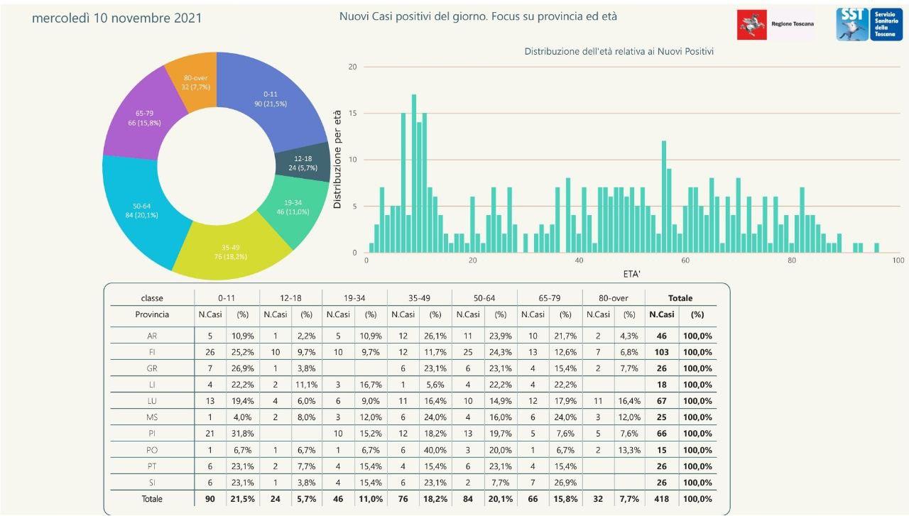 Pubblicati i dati di oggi, 10 novembre, in Regione Toscana. Sono 418 i nuovi casi positivi in Toscana nelle ultime 24 ore