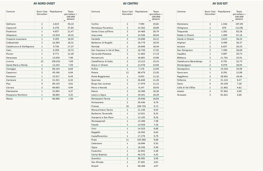 “I nuovi casi registrati in Toscana sono 215 su 17.396 test di cui 8.709 tamponi molecolari e 8.687 test rapidi. Il tasso dei nuovi positivi è 1,24% (3,2% sulle prime diagnosi).