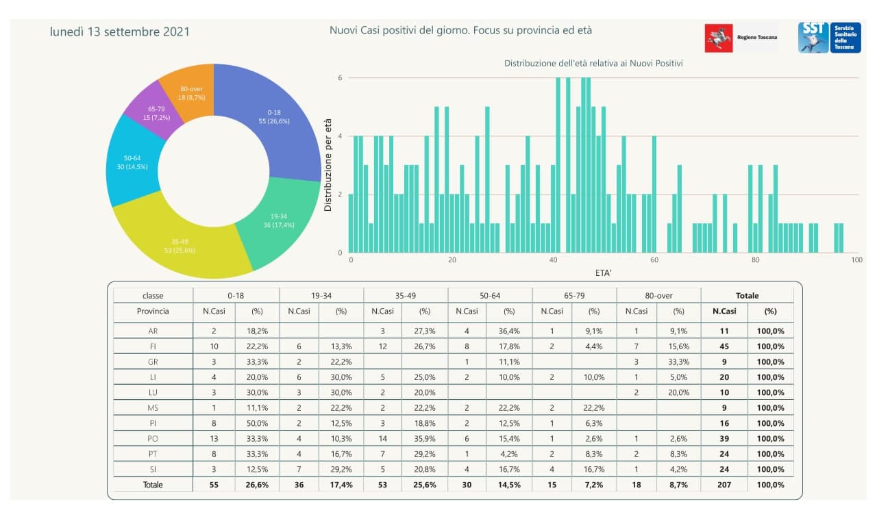 Anticipati i dati di oggi 13 settembre in Regione Toscana dal governatore Giani. Sono 207 i nuovi casi positivi in Toscana nelle ultime 24 ore