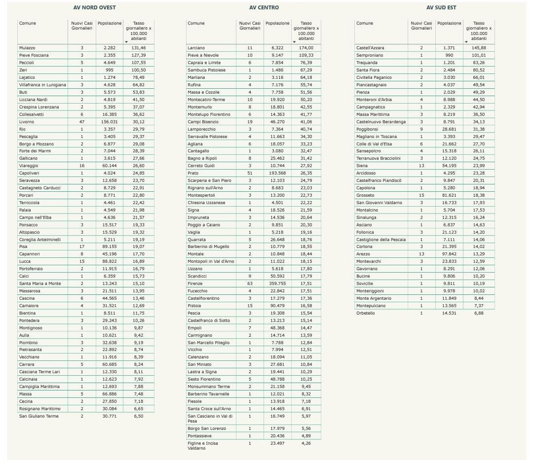 “I nuovi casi registrati in Toscana sono 639 su 13.544 test di cui 8.068 tamponi molecolari e 5.476 test rapidi. Il tasso dei nuovi positivi è 4,72% (11,6% sulle prime diagnosi).”