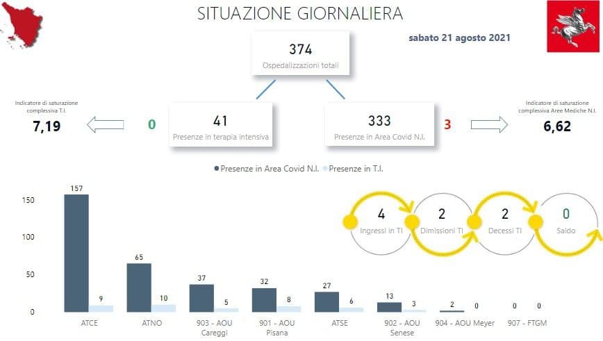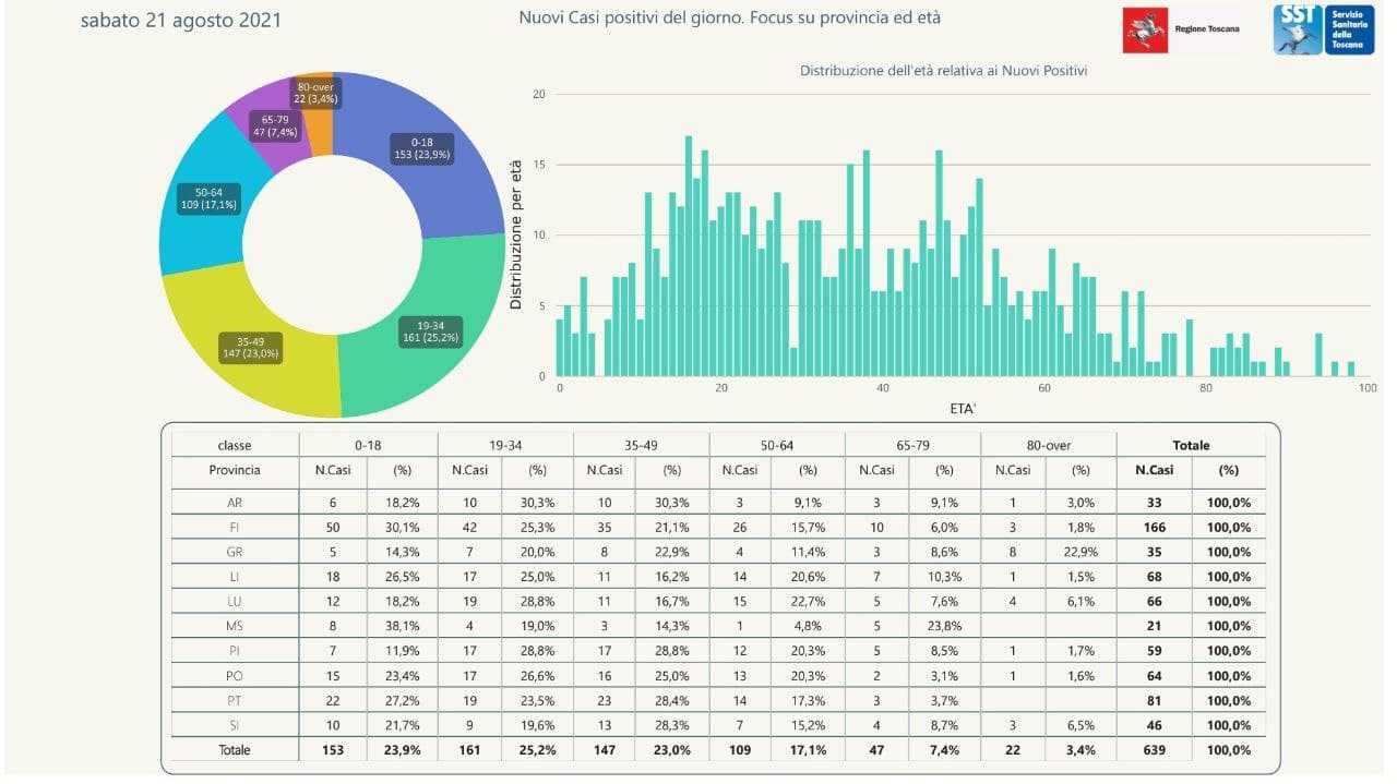 Anticipati i dati di oggi 21 agosto in Regione Toscana dal governatore Giani. Sono 639 i nuovi casi positivi in Toscana nelle ultime 24 ore