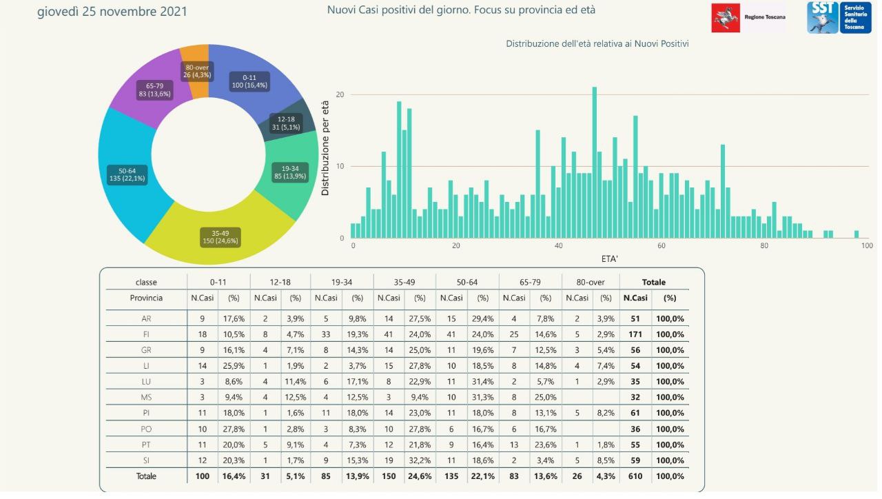 Pubblicati i dati di oggi, 25 novembre, in Regione Toscana. Sono 610 i nuovi casi positivi in Toscana nelle ultime 24 ore