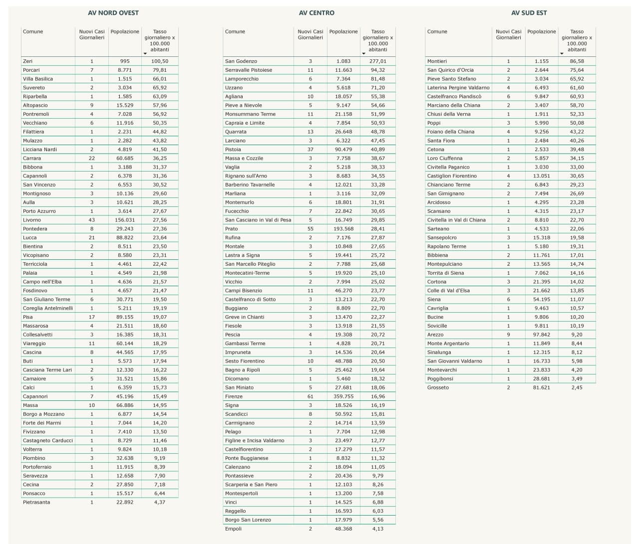 “I nuovi casi registrati in Toscana sono 677 su 13.644 test di cui 8.945 tamponi molecolari e 4.699 test rapidi. Il tasso dei nuovi positivi è 4,96% (10,5% sulle prime diagnosi).