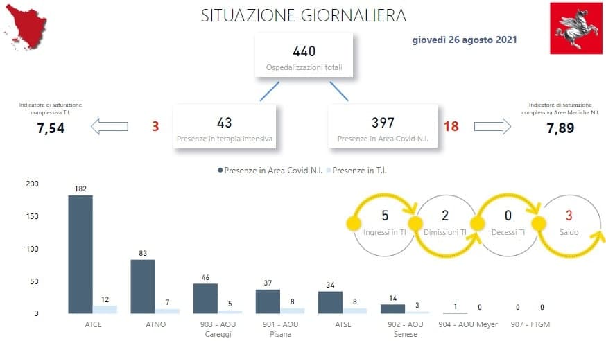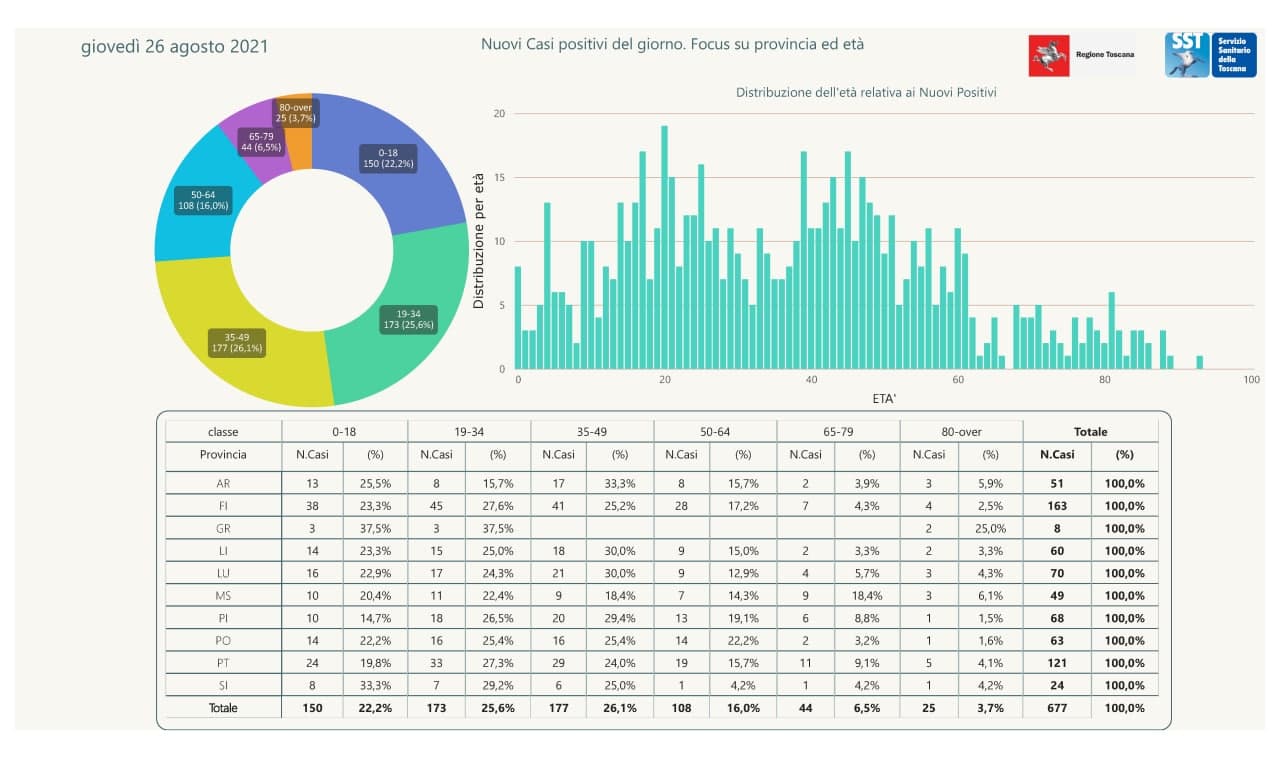 Anticipati i dati di oggi 26 agosto in Regione Toscana dal governatore Giani. Sono 677 i nuovi casi positivi in Toscana nelle ultime 24 ore