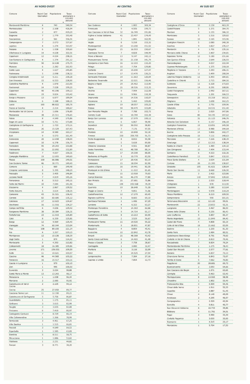 Covid: i dati di oggi 27 marzo in Toscana con i positivi per comune