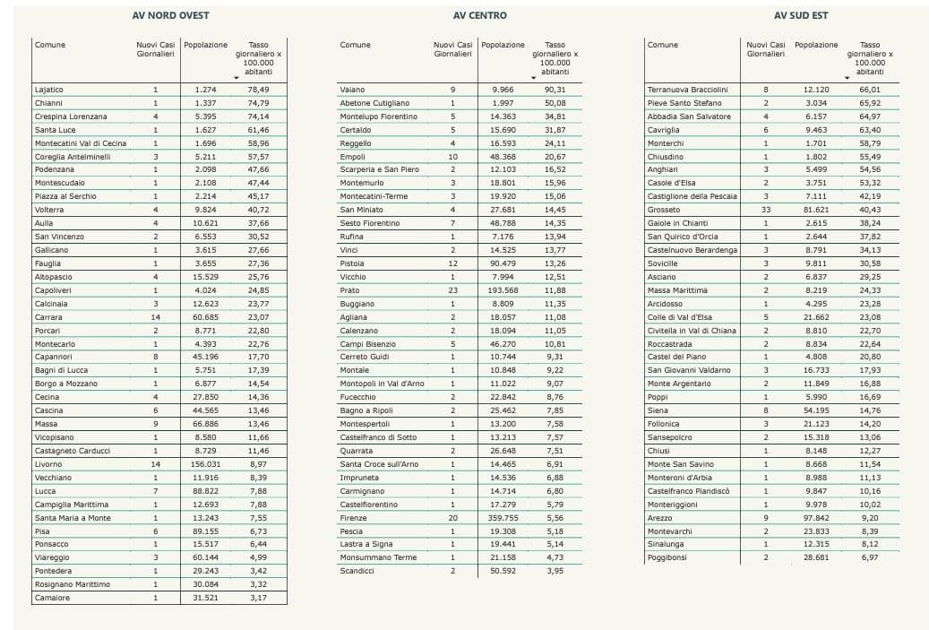 “I nuovi casi registrati in Toscana sono 385 su 29.755 test di cui 8.918 tamponi molecolari e 20.837 test rapidi. Il tasso dei nuovi positivi è 1,29% (4,3% sulle prime diagnosi).