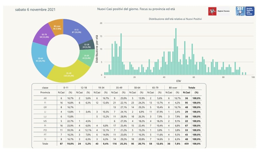 Pubblicati i dati di oggi 6 novembre in Regione Toscana. Sono 459 i nuovi casi positivi in Toscana nelle ultime 24 ore