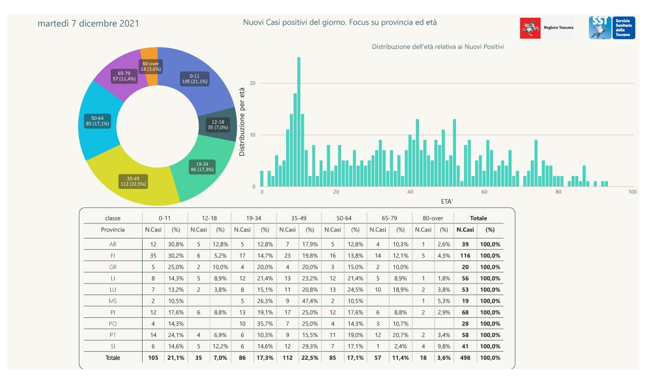 Pubblicati i dati di oggi, 7 dicembre, in Regione Toscana. Sono 498 i nuovi casi positivi in Toscana nelle ultime 24 ore