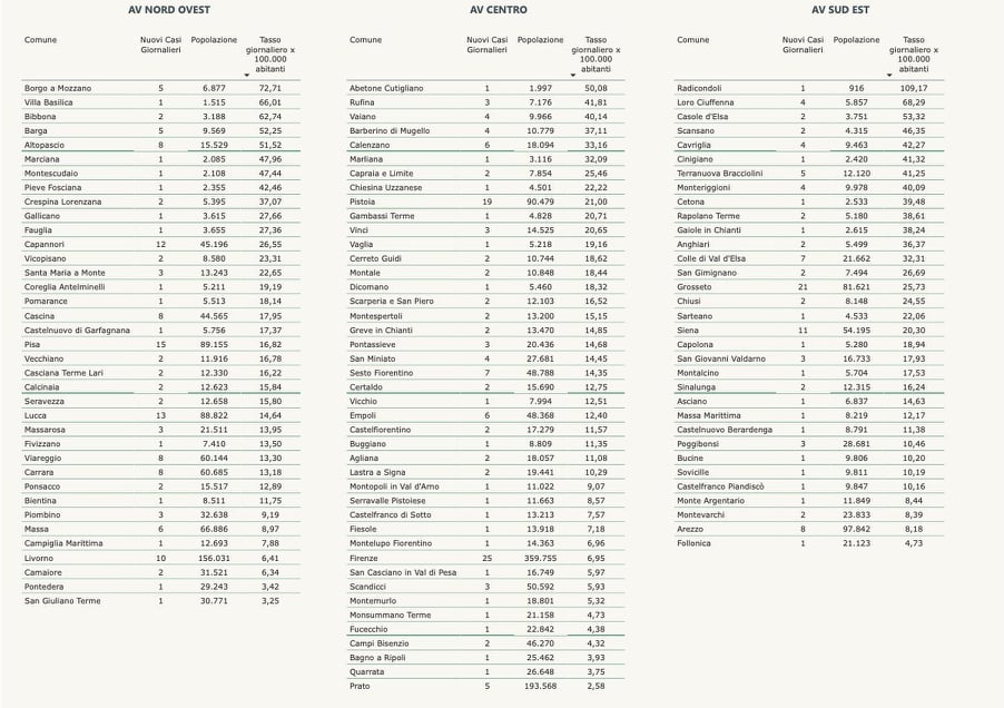 “I nuovi casi registrati in Toscana sono 373 su 28.281 test di cui 9.398 tamponi molecolari e 18.883 test rapidi. Il tasso dei nuovi positivi è 1,32% (4,4% sulle prime diagnosi).