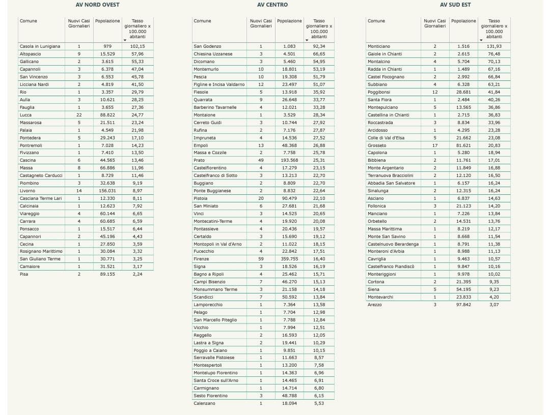 “I nuovi casi registrati in Toscana sono 495 su 18.198 test di cui 9.043 tamponi molecolari e 9.155 test rapidi. Il tasso dei nuovi positivi è 2,72% (7,8% sulle prime diagnosi).