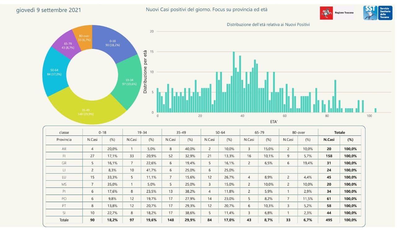 Anticipati i dati di oggi 9 settembre in Regione Toscana dal governatore Giani. Sono 495 i nuovi casi positivi in Toscana nelle ultime 24 ore