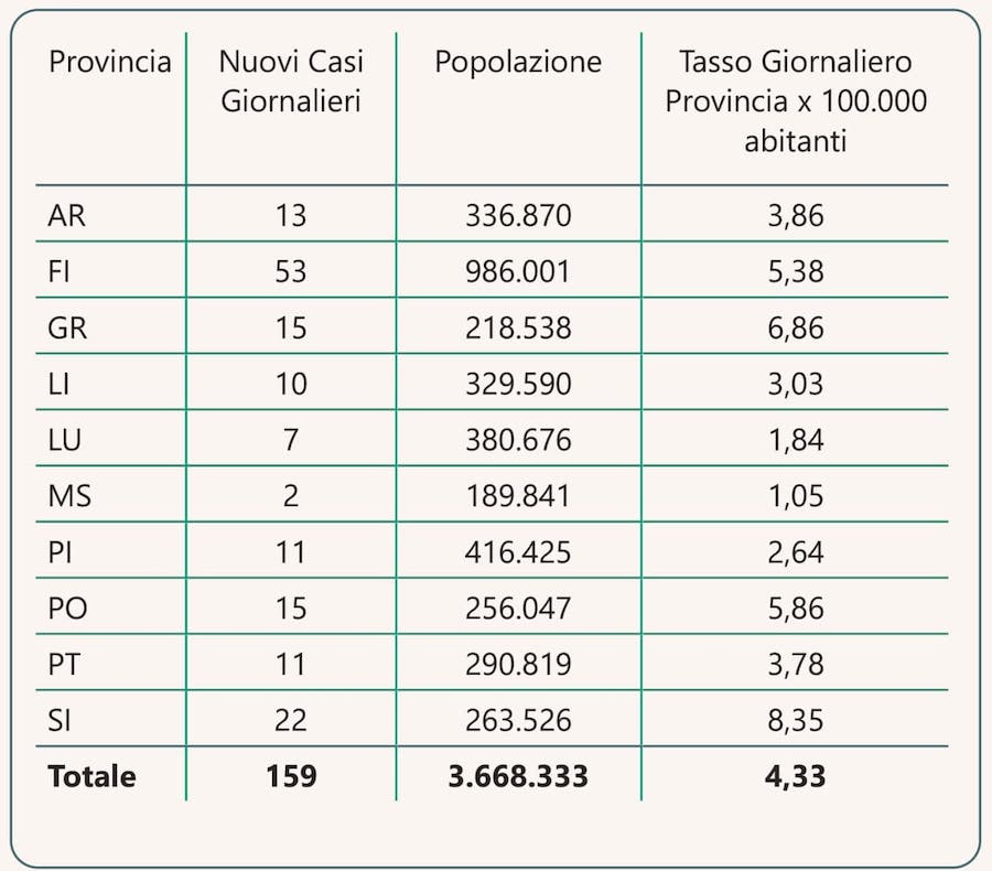 Il governatore Giani ha anticipato i primi dati di oggi 31 maggio. Sono 159 i nuovi casi positivi in Toscana nelle ultime 24 ore