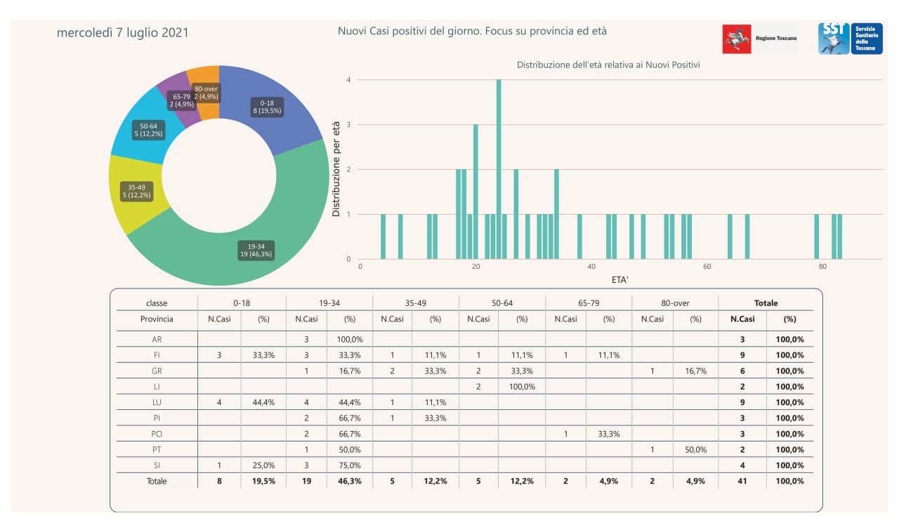 Il governatore Giani anticipa i primi dati di oggi 7 luglio. Sono 41 i nuovi casi positivi in Toscana nelle ultime 24 ore