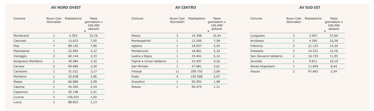 Covid: i dati di oggi in Toscana con la tabella dei nuovi positivi nei comuni