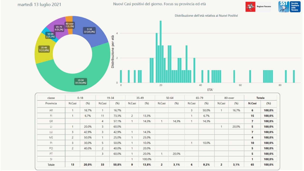 Il governatore Giani anticipa i primi dati di oggi 13 luglio. Sono 65 i nuovi casi positivi in Toscana nelle ultime 24 ore