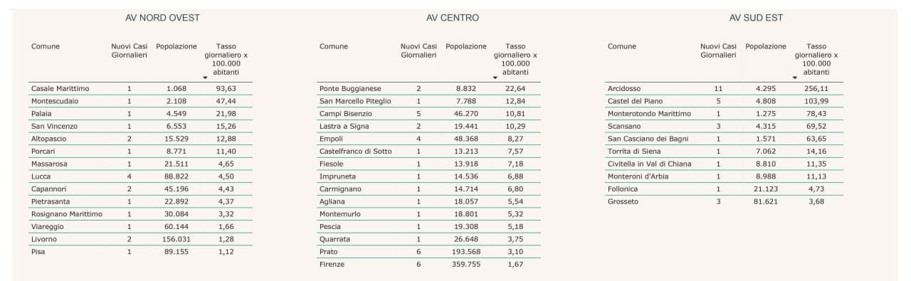 Questi i nuovi positivi nei singoli comuni: