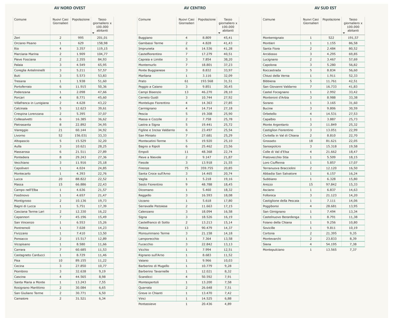 “I nuovi casi registrati in Toscana sono 675 su 14.774 test di cui 9.715 tamponi molecolari e 5.059 test rapidi. Il tasso dei nuovi positivi è 4,57% (10,3% sulle prime diagnosi).”