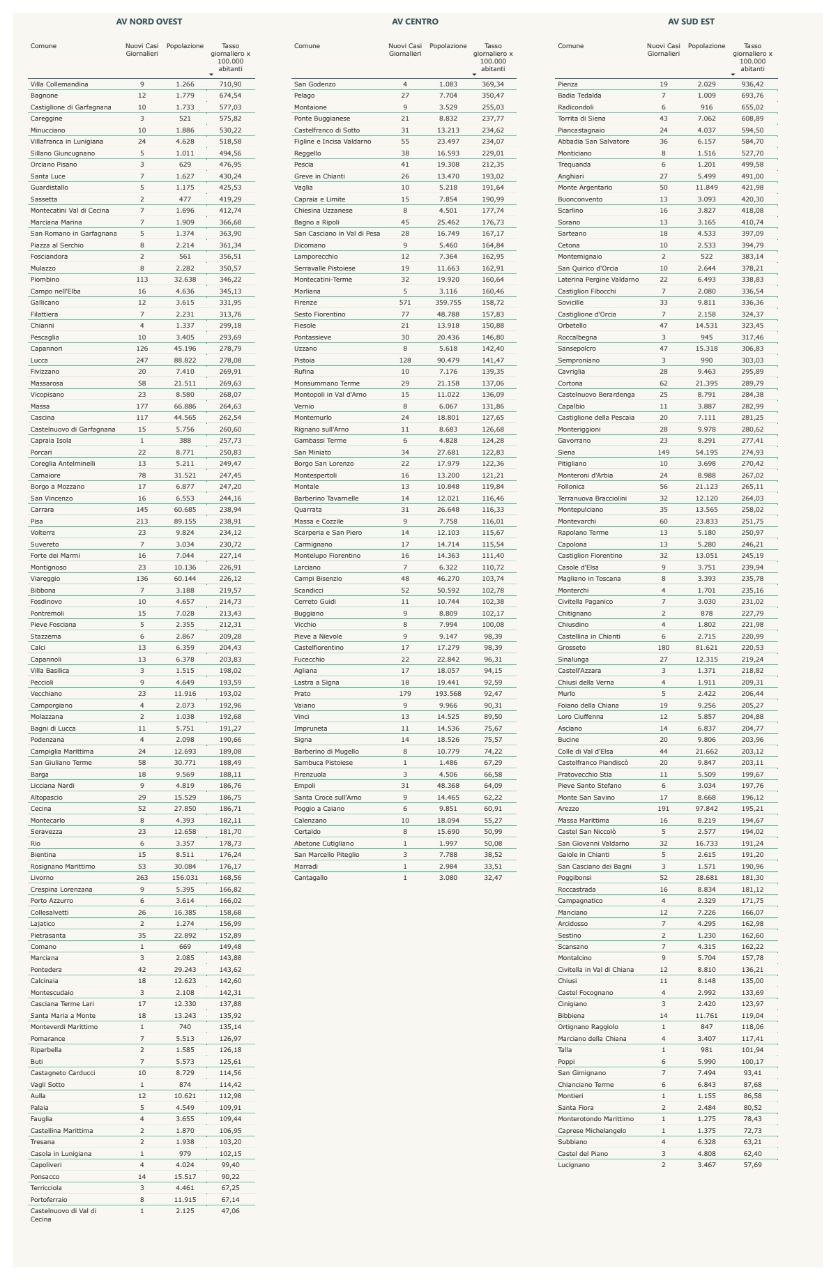 “I nuovi casi registrati in Toscana sono 6.778 su 42.520 test di cui 8.140 tamponi molecolari e 34.380 test rapidi. Il tasso dei nuovi positivi è 15,94% (67,1% sulle prime diagnosi).