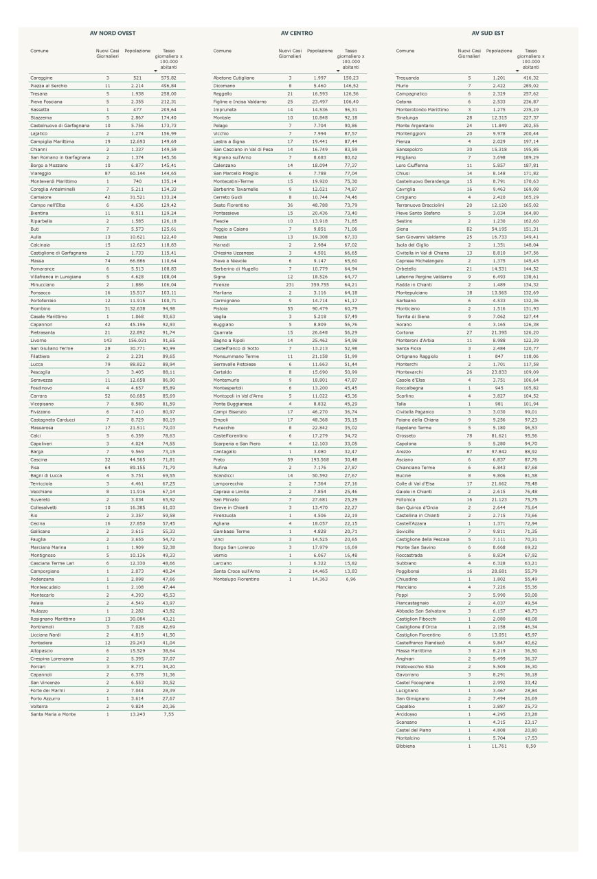 Questi dati diffusi dal governatore Giani: