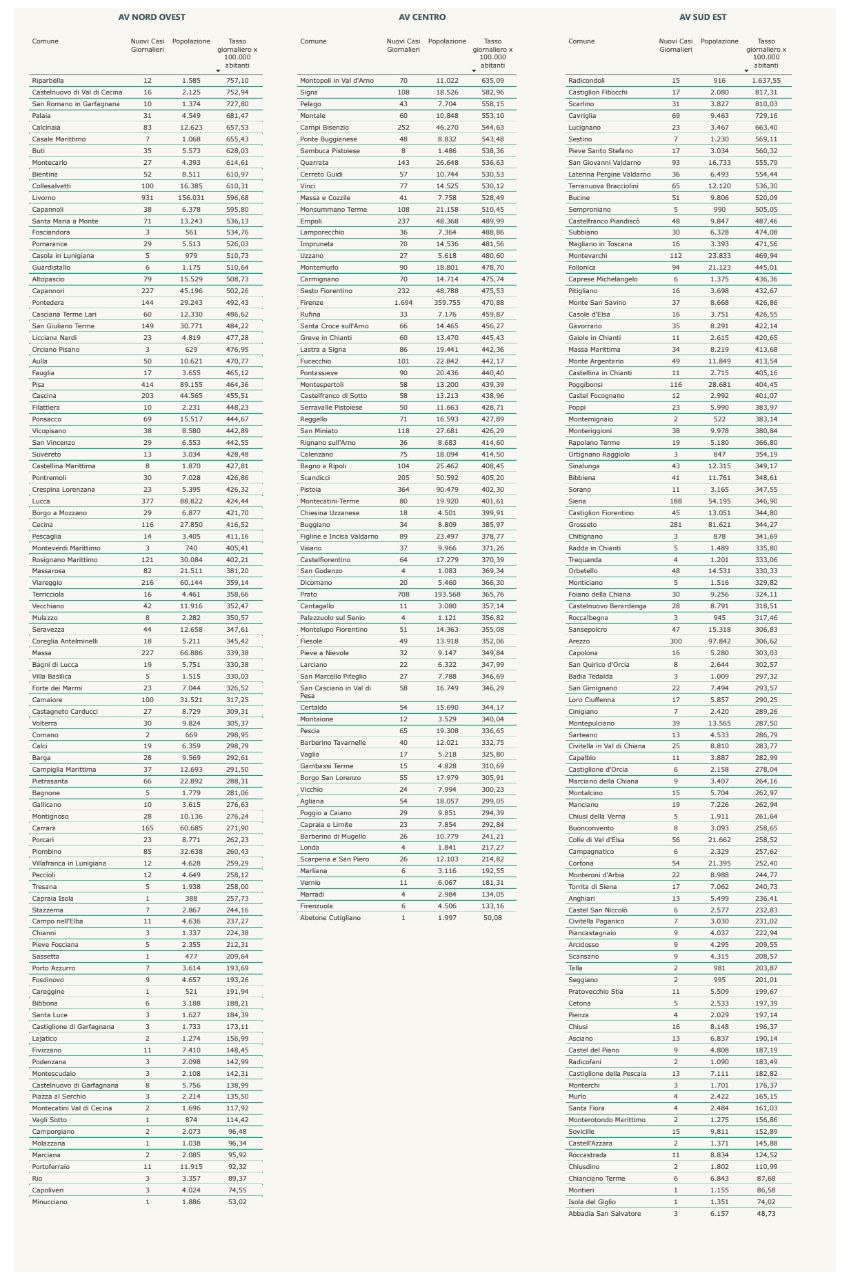 Pubblicati i dati di oggi dal Governatore. Giani. In Toscana sono 14.799 nuovi positivi al covid-19. Nel pisano sono 1.955 i nuovi casi