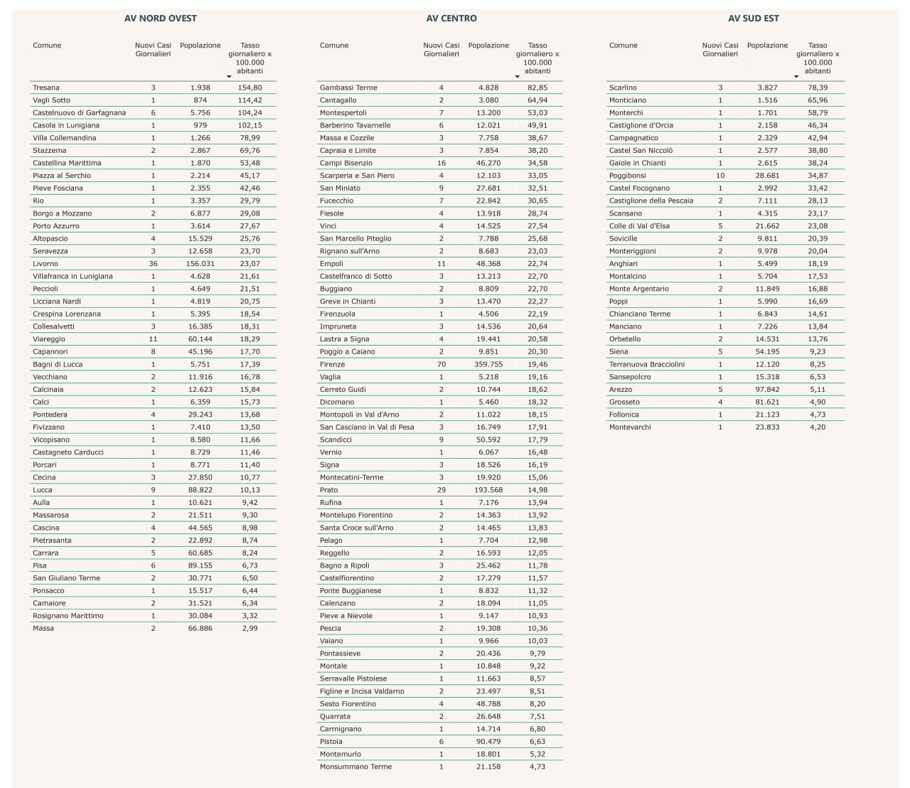 Covid: sono 470 i casi in Toscana nella ultime 24 ore. La tabella dei positivi nei comuni