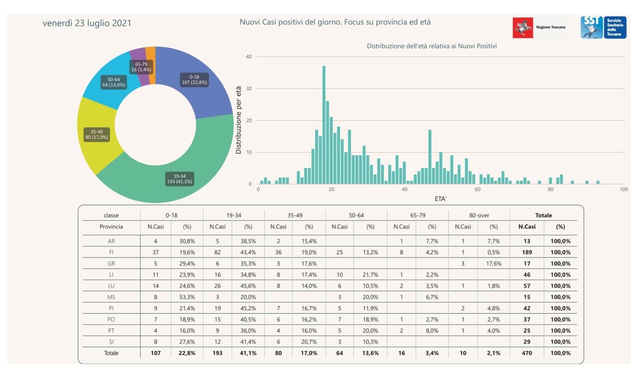 Il governatore Giani anticipa i primi dati di oggi 23 luglio. Sono 470 i nuovi casi positivi in Toscana nelle ultime 24 ore