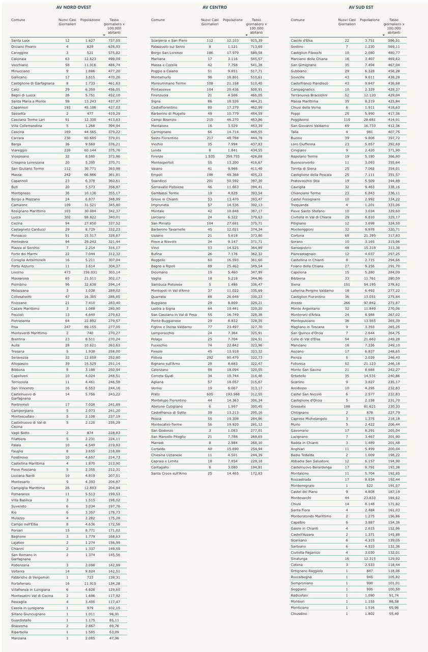 “I nuovi casi registrati in Toscana sono 12.454 su 62.104 test di cui 21.015 tamponi molecolari e 41.089 test rapidi. Il tasso dei nuovi positivi è 20,05% (74,5% sulle prime diagnosi).