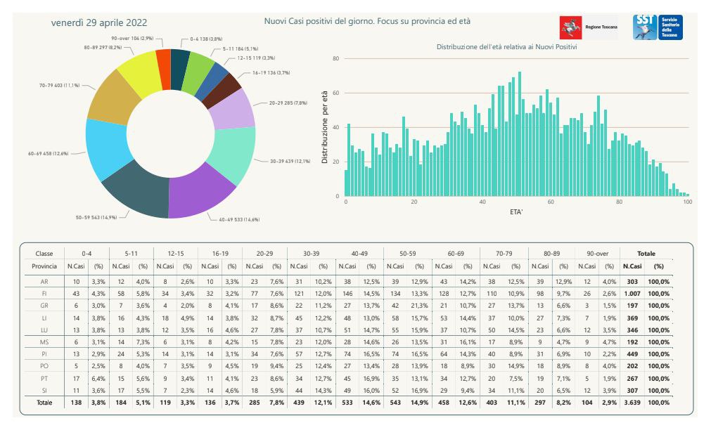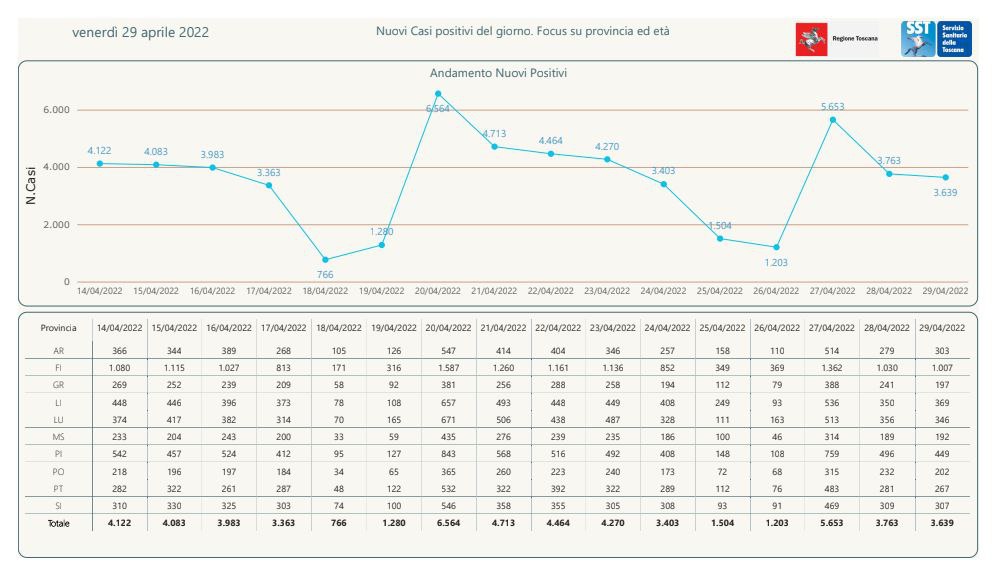 Pubblicati i dati di oggi dal Governatore. Giani. In Toscana sono 3.804 nuovi positivi al covid-19. Nel pisano sono 449 i nuovi casi