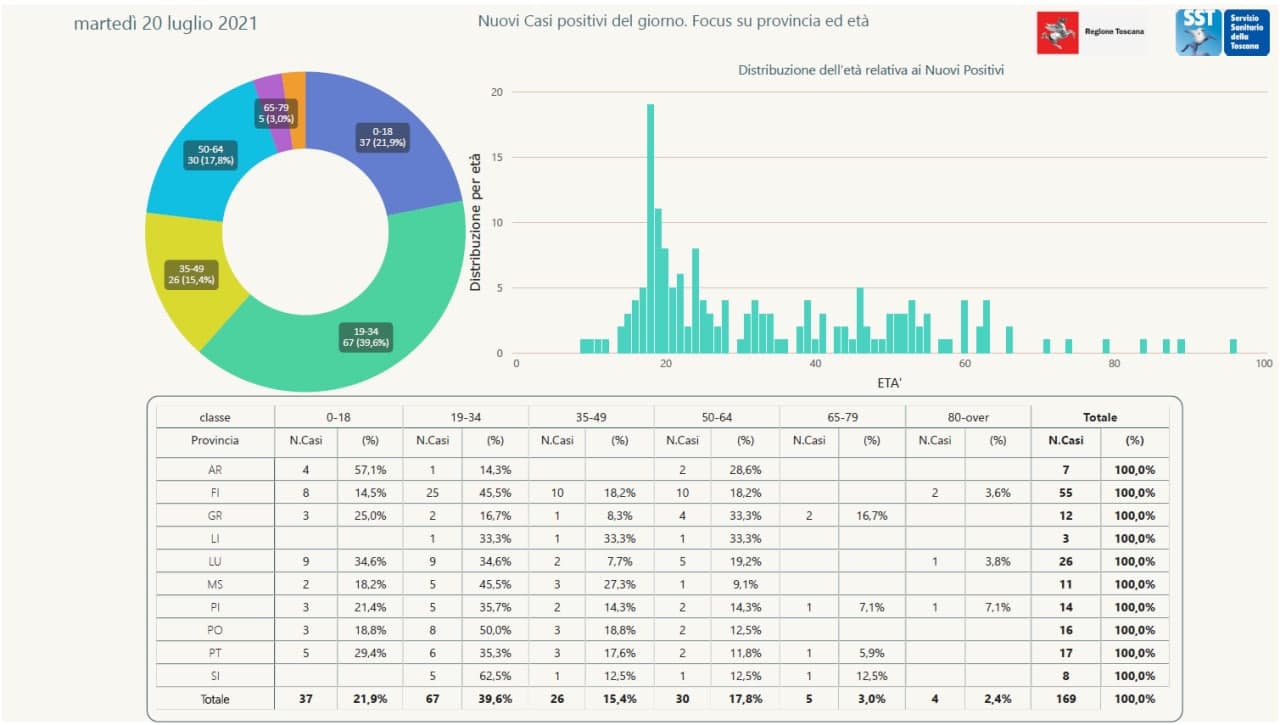 Il governatore Giani anticipa i primi dati di oggi 20 luglio. Sono 169 i nuovi casi positivi in Toscana nelle ultime 24 ore