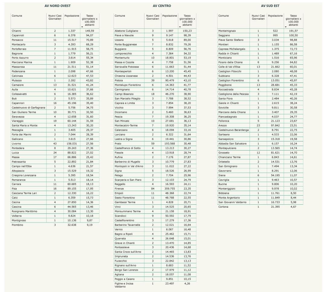 “I nuovi casi registrati in Toscana sono 844 su 14.227 test di cui 9.406 tamponi molecolari e 4.821 test rapidi. Il tasso dei nuovi positivi è 5,93% (12,5% sulle prime diagnosi).