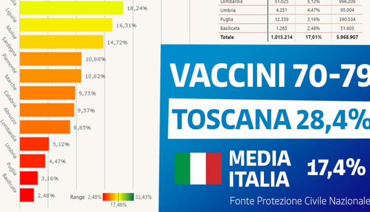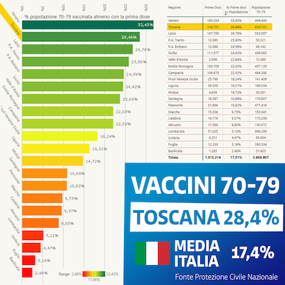 “La Toscana è tra le regioni che hanno somministrato più vaccini con AstraZeneca alla fascia di età 70-79.Tra quelle che hanno coperto maggiormente anche gli over 90, somministreremo con i medici di famiglia la prima dose di Pfizer anche a tutti gli over 80 entro le prossime due settimane.”