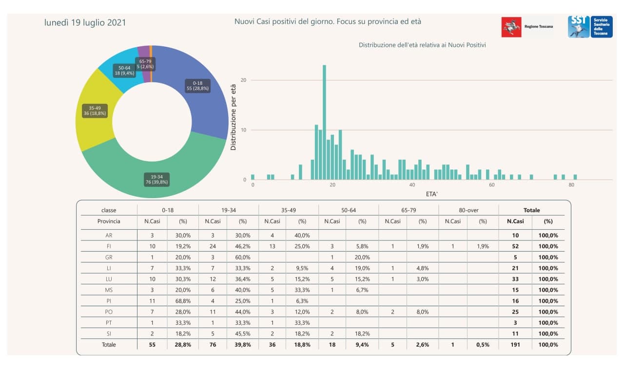 Il governatore Giani anticipa i primi dati di oggi 19 luglio. Sono 191 i nuovi casi positivi in Toscana nelle ultime 24 ore
