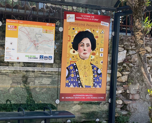 Prosegue la collaborazione con il Liceo Russoli di Pisa dove gli studenti hanno realizzato dei bellissimi ritratti che sono stati affissi all’interno delle pensiline della città.